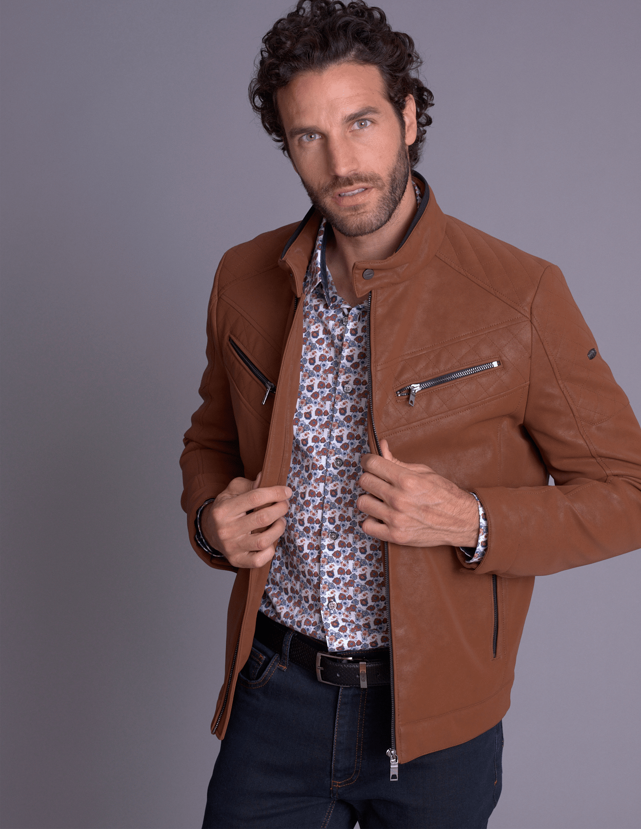 Blouson Gentleman Driver coupe ajustée avec épaules matelassées losanges. Isolation Sorona légère, 4 poches extérieures et 2 intérieures.