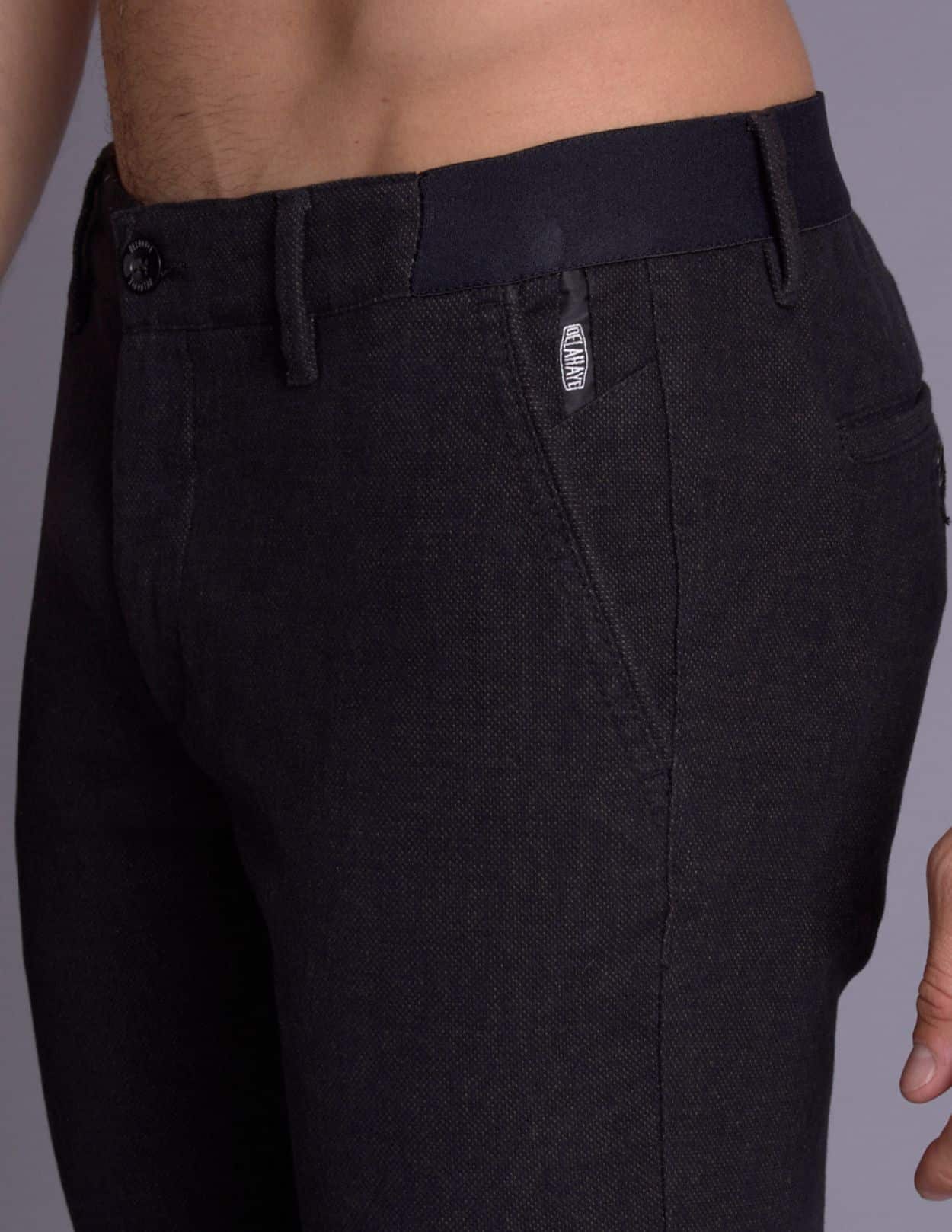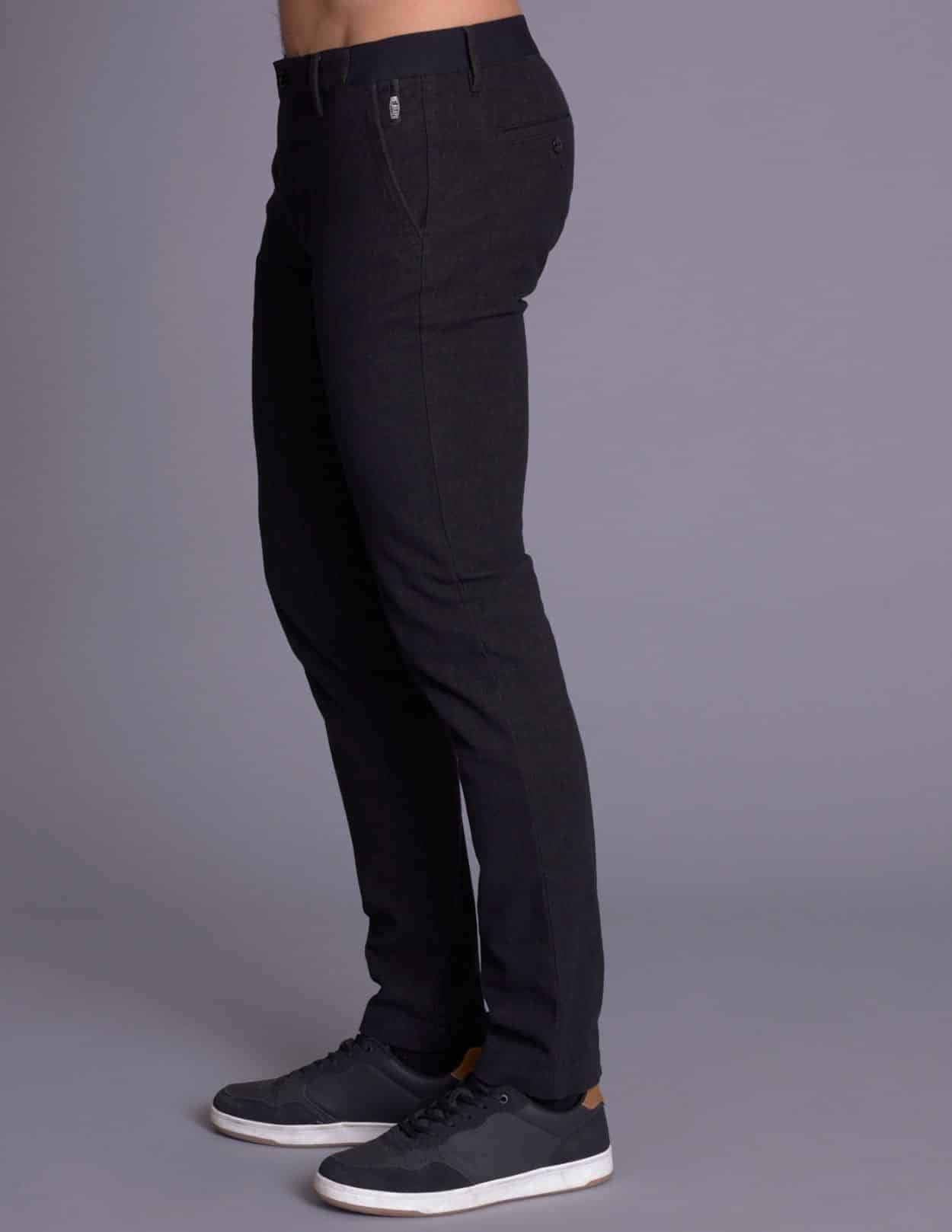 Pantalon Delahaye coupe près du corps en coton stretch. Aspect flanelle tramé, ceinture élastiquée et finitions élégantes pour un confort durable.