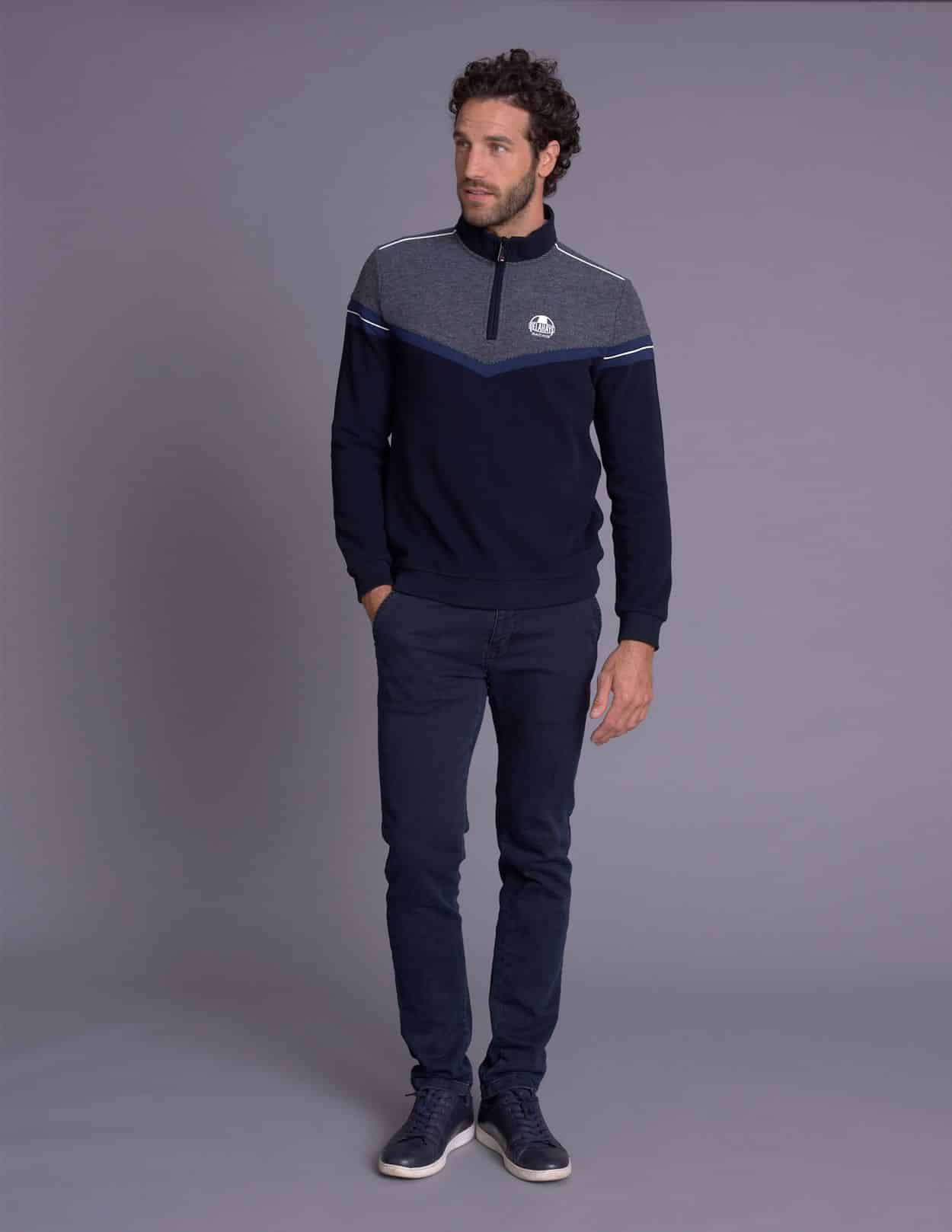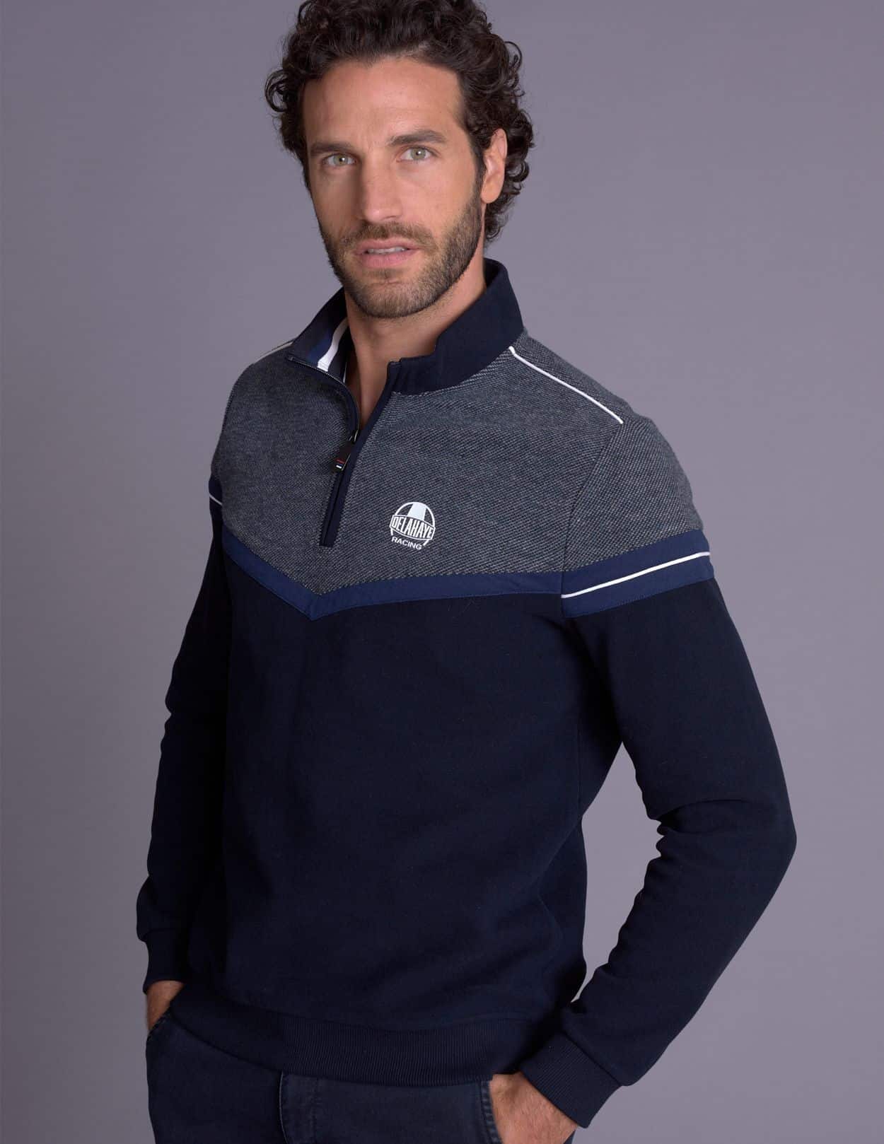 Polo LABRESSE navy en coton-polyester. Coupe ajustée, col zippé et empiècements contrastés pour un style Racing moderne et performant.
